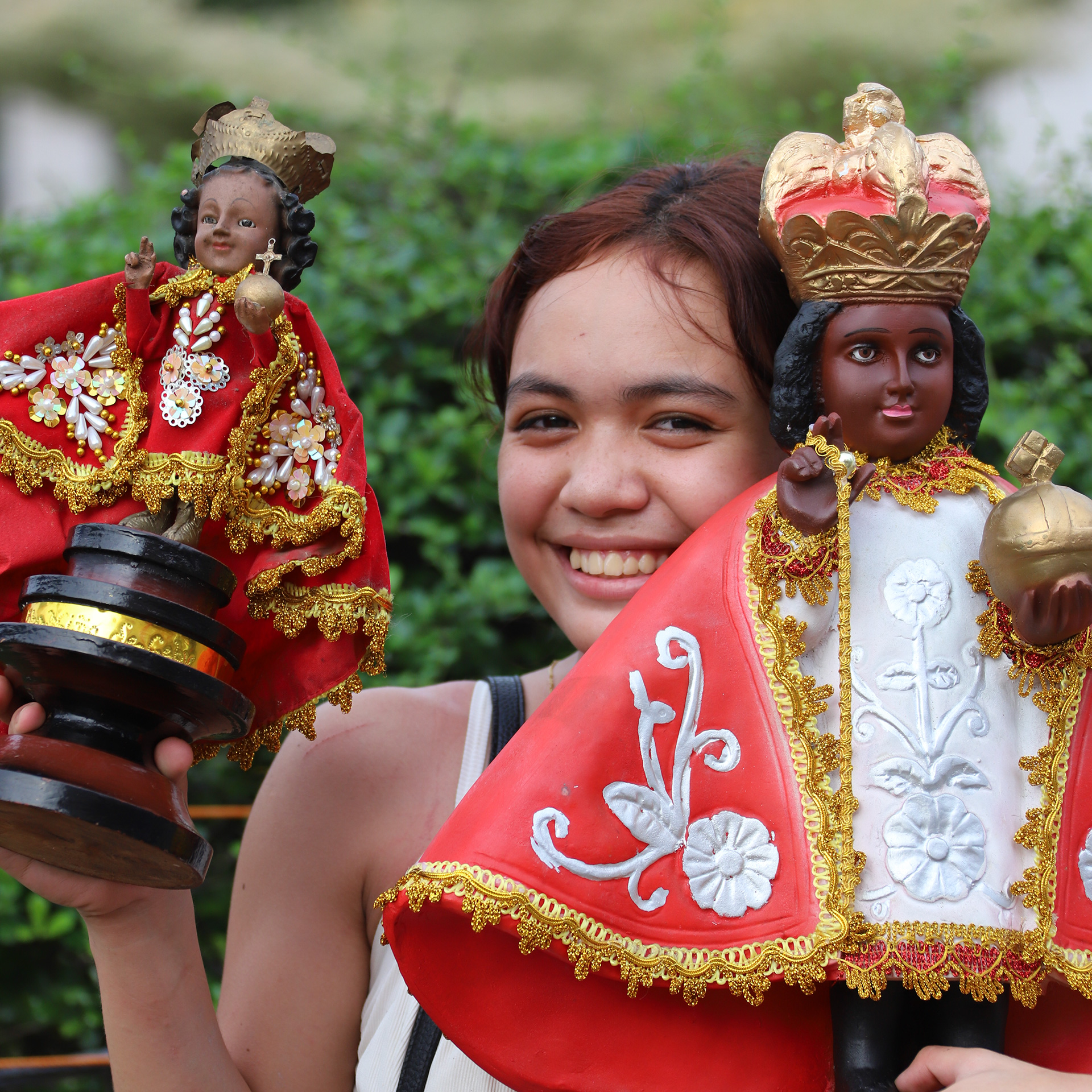 Festivali keskmes on katoliku kirik ja Santo Niño ehk Jeesuslapsuke. Kui kirikus käidud (kõik loomulikult ei mahu kirikutesse, pühakodade kõrvale on üles seatud suured ekraanid) ning tänavatel marsitud, siis on aeg pidustusteks ja tantsudeks.
