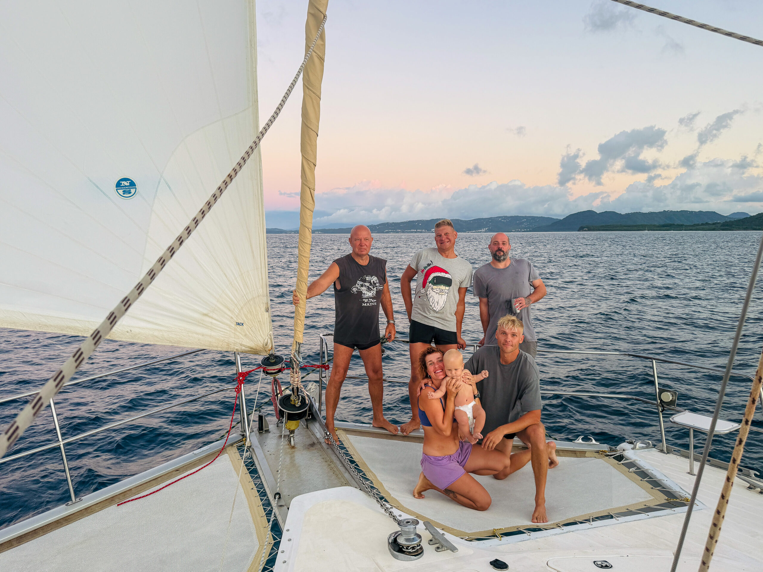 Meile olid esimesteks kuudeks pardal abiks juba korra ümber palli purjetanud Imre Aljas vanemtüürimehena ja Annmari isa Ain Eespäev mehaanikuna. Lisaks meie perele sõitsid meiega nädala või kahe kaupa kaasa paljud sõbrad.