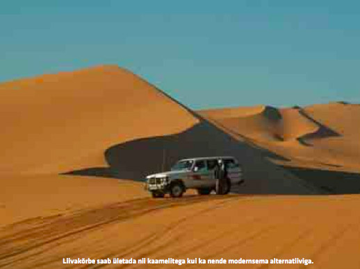 Liibüa kõrbe, mis on osa Saharast, iseloomustab mitmekülgsus ning määratu avarus. Oma reisi jooksul nägime nii musta, halli, pruuni, punast kui ka kollast kõrbe, ääretuid tasaseid välju ja kõrgeid mägesid, rohelisi oaase ja mahajäetud liivast kõrbelinnu. Kui vaadata kaardilt neid piirkondi, mis nädala aja jooksul läbi sai sõidetud ning võrrelda seda kogu Sahara kõrbega, ei kujuta ettegi, kuidas iidsetel aegadel neid alasid kaameli või hobusega läbiti. Juhtub praegugi aeg-ajalt, et kohalikud võimud või turistid leiavad kõrbest illegaalselt lõunast üle piiri tulnud veoautosid kümnete laipadega, sest bensiin lõppes otsa või auto läks katki.