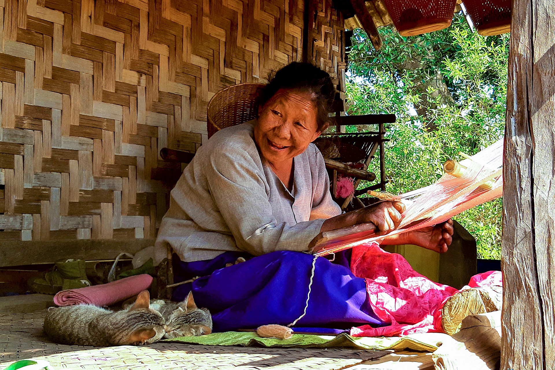 Aga mis siin salata, ostsin ka ise midagi mälestuseks – käsitöökojast riietuseseme, mida peremees naljatades nimetas kohalikuks teksatagiks. Mõistagi käis ka kauplemine ostu juurde. Jaki detailid olid tehtud kangastelgedel käsitsi ja seejärel tükid kokku õmmeldud. Asi nägi väga ehe välja, meenutades tõepoolest 70ndate stiilis teksatagisid. Pererahvas valmistas riiet veel üsna eksootilisel, looduslikul moel. Vees kasvavad lootose- taimed korjati kokku ning nende vartest eraldati imepeened niiti meenutavad osad, mis põimiti omavahel mitmekaupa kokku, saades sedaviisi midagi lõngataolist. Saadud lõng rändas aga hiljem edasi kangastelgedele.