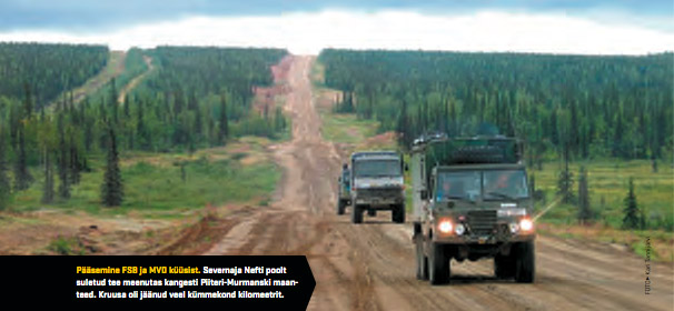 Esimesed 70 kilti naftateid oli lust ja lillepidu. Tolm lendas ja meeleolu oli ülev. Nagu Piiteri-Murmanski tee, ainult kruusakattega. Aga kauaks meile seda rõõmu ei jätkunud ning ühel hetkel leidsime ennast naftapuurtorni juures, kust edasi lõppes tee ja meie kiirel liikumisel oli punkt. Järgmised viis päeva sarnanesid tollele 10-meetrit-tunnis-teele, ehkki nood olid viis korda hullemad. Siin liikusid vähemalt degatšid ehk 12-tonnised roomikud, millega naftabaaside vahel maismaaühendust peeti ja mis meid väga lootusetutest kohtadest üle aitasid. Mõned heast südamest, nooremad mehed aga viina ja raha eest. Pärast viiepäevast hiilimist olime läbinud ligikaudu 50 kilti talveteed ning jõudnud välja viimasesse naftabaasi, kus master Vanja meid juba sooja sauna ja kolmekäigulise lõunaga ootas. Tõeline oaas keset kõrbe.