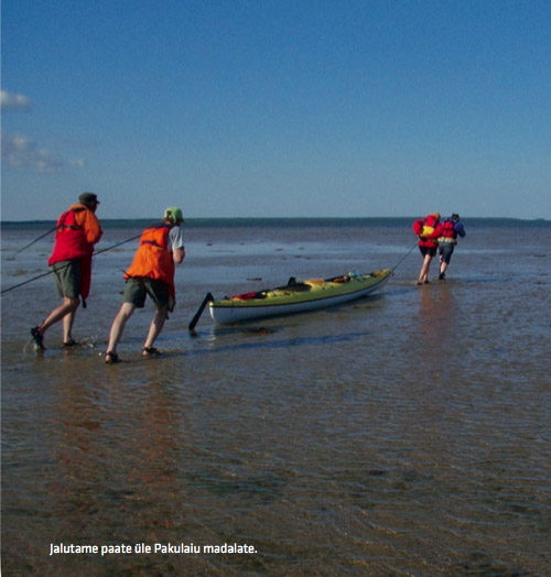 Uhkelt tagantlaines surfates ja lustides saabusime Triigi sadamasse, kus meid ootas saare pealinnast saabunud ning päeva kenasti täiendanud rikkalik kookidega löunasöök. Pärast pikka pidu tuli öhtupoolikul ka pisut vaeva näha, et päevane läbisöit väärilise numbrini viia. Poole seitsmeks jalutasime oma paadid üle Pammana nina ja Pakulaiu vahel paiknevate madalate, seal kus Hiiumaa on Saaremaale köige lähemal.