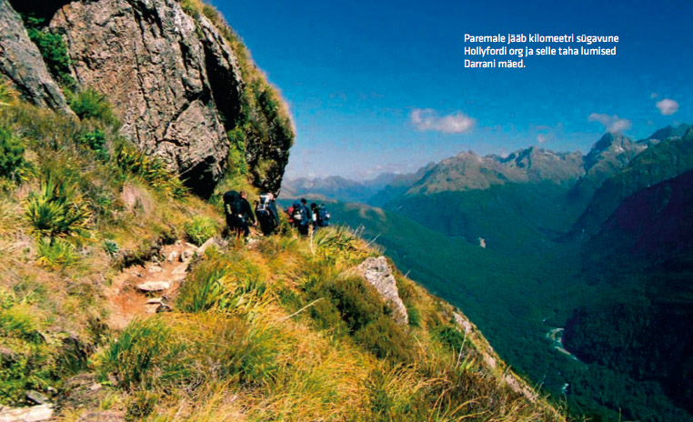 Alustasime 550 m kõrguselt Fiordlandiga piirnevast Mount Aspiringi rahvuspargist. Hakatuseks tuli desinfitseerida saapad ja võtta kaasa kollane prügikott, mida kõik hoiavad kui silmatera ja täidavad piinliku täpsusega. Ei näinud me seal ega mujalgi metsa alla tassitud autorehve, vana mööblit ega kipsplaate, samuti mitte kogemata näppude vahelt mahapudistatud paberitükikesi. Mis sest, et Routeburni rada on käidud juba aastasadu – algul maoorid rohelise kivi pounamu, s.t nefriidi järel ja nüüd juba ka oma 120 aastat end matkajaiks pidavad seltskonnad.