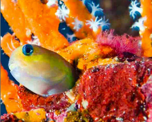 Et püstloodse seina ääres paremini oma asendit kontrollida, oli vaja sõrm millelegi toetada. Ettevaatlikult murdunud reelingu otsast kinni võttes tundsin, nagu oleks näpp selle külge kinni kleepunud. Lähemal vaatamisel selgus, et olin kogemata ühe tillukese mereelaniku (Ecsenius midas, Midas Blenny) koduukse jõhkralt sulgenud ja nii ta oma väikeste hammastega mulle märku andiski. Õnneks ei olnud ta väga solvunud ja poseeris rahulikult mitu minutit.