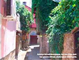 Kahel pool mu kõrval on türgi vaipade villalõnga järgi lõhnavad poekesed, vanadesse Osmani-aegsetesse hoonetesse ehitatud külalistemajad. Palju rohelust: punastesse õitesse mattunud lillekastid, keskaegse müüri kohal rippuvad viinamarjad, vanad palmid ja üksikud banaanitaimed.