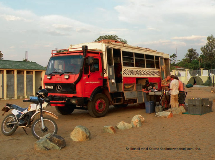 Dragoman Overlandi valisin Belgia firma www.connections.be soovitusel (olen neilt sageli soodsaid lennupileteid, hotelle ja rendiautoteenust ostnud). Nende sõnul pakuvad Kairost Kaplinna reisimist väga vähesed firmad (paljud ei taha läbi Sudaani reise korraldada), üks sellistest on Dragoman Overland, kellega neil olid ka isiklikud head kogemused.