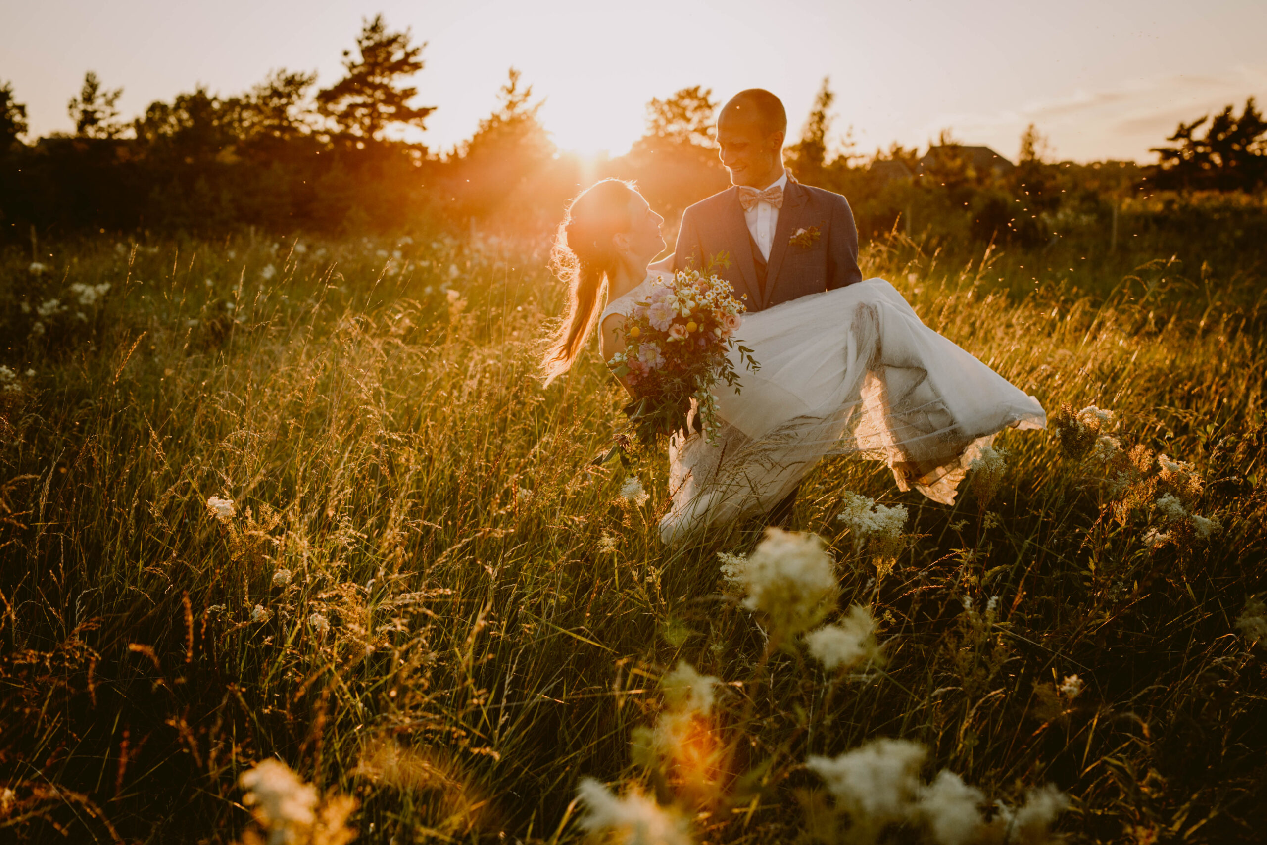 Pulmalilleks oli valitud päevalill, mis vaasidesse torgatuna metsaalust kaunistas. Suurem pidu toimus hiljem merekaldal paadikuuris, ent metsatemaatika jätkus pulmatordini välja.