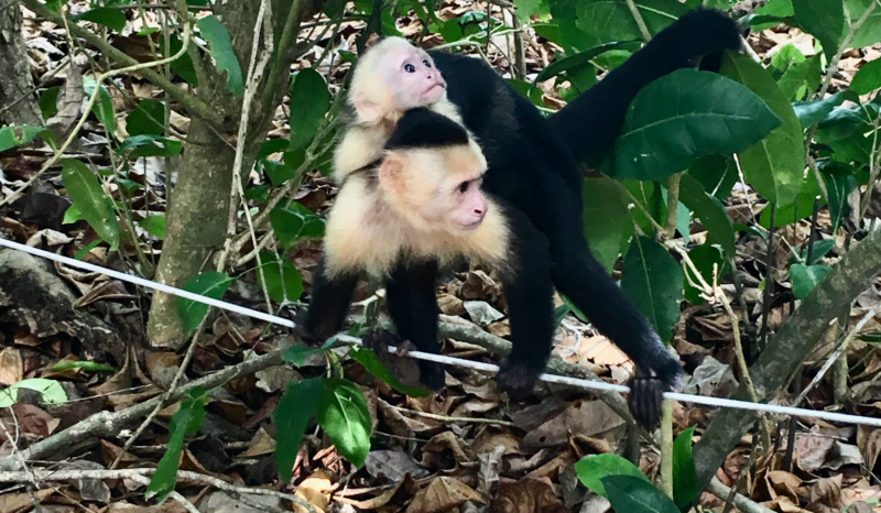 Ühe pöörde järel kohtume valge näoga kaputsiinahviga, kes kõlgutab jalgu Costa Rica lipuvarda otsas ja vaatab meid sama hindava pilguga nagu meie teda. Tema kohta öeldakse, et ta on pargi tõeline omanik. Varastab su lõunasöögi, kui hetkeks mujale vaatad, ja istub siis kõrgel puu otsas, süües ananassi nagu prints.