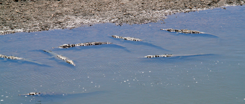 Tárcoles jõgi on tuntud kui krokodillide paradiis. Juba sillalt üle sõites näeme neid. Laisad pruunid kehad, mis hulbivad jões nagu palgid. Neid on nii palju, et me loobume kiiresti loendamisest.
