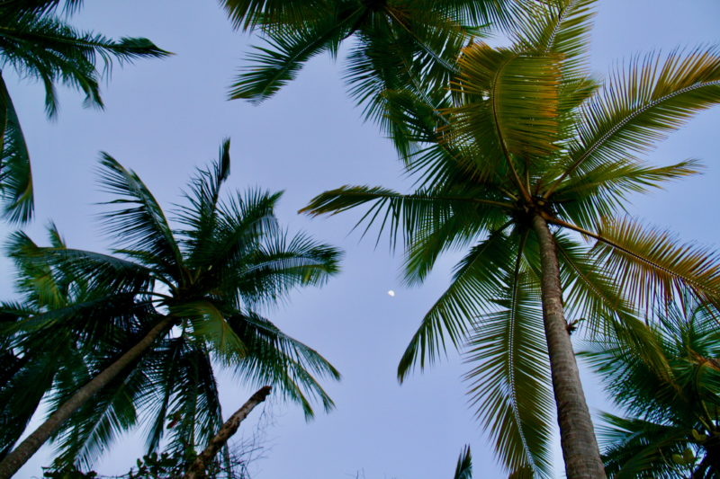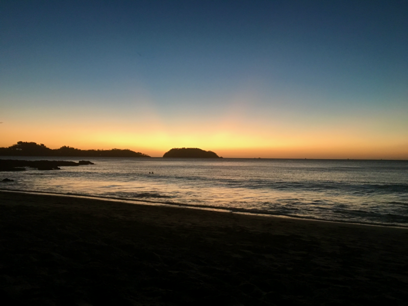 Jõuame randa just siis kui päike libiseb silmapiiri taha. Metsased saared ulatuvad veest välja nagu valvurid, kes hoiavad randa oma embuses. Koerad istuvad rannas ja vaatavad päikeseloojangut, jälle see sarnasus Panamaga. Taevas on täis kiudpilvi, mis on värvitud oranžiks, kollaseks, roosaks, roheliseks ja lillaks. Värvid segunevad, muutuvad. Tähed on juba taevas. Ja ka ookean peegeldab kogu seda ilu ja värviküllust.