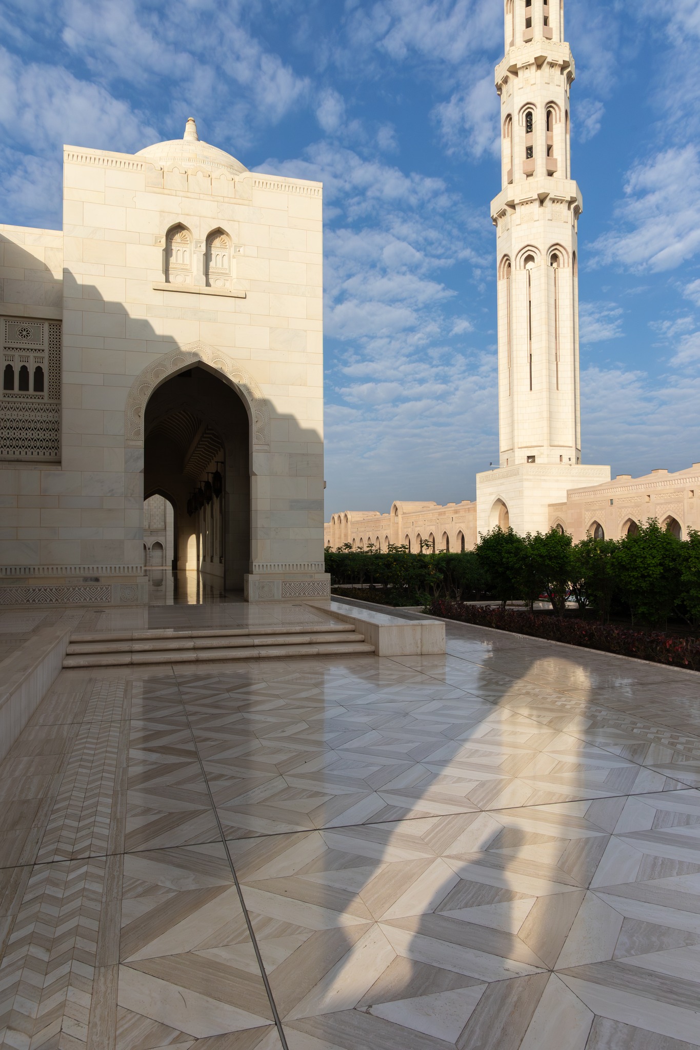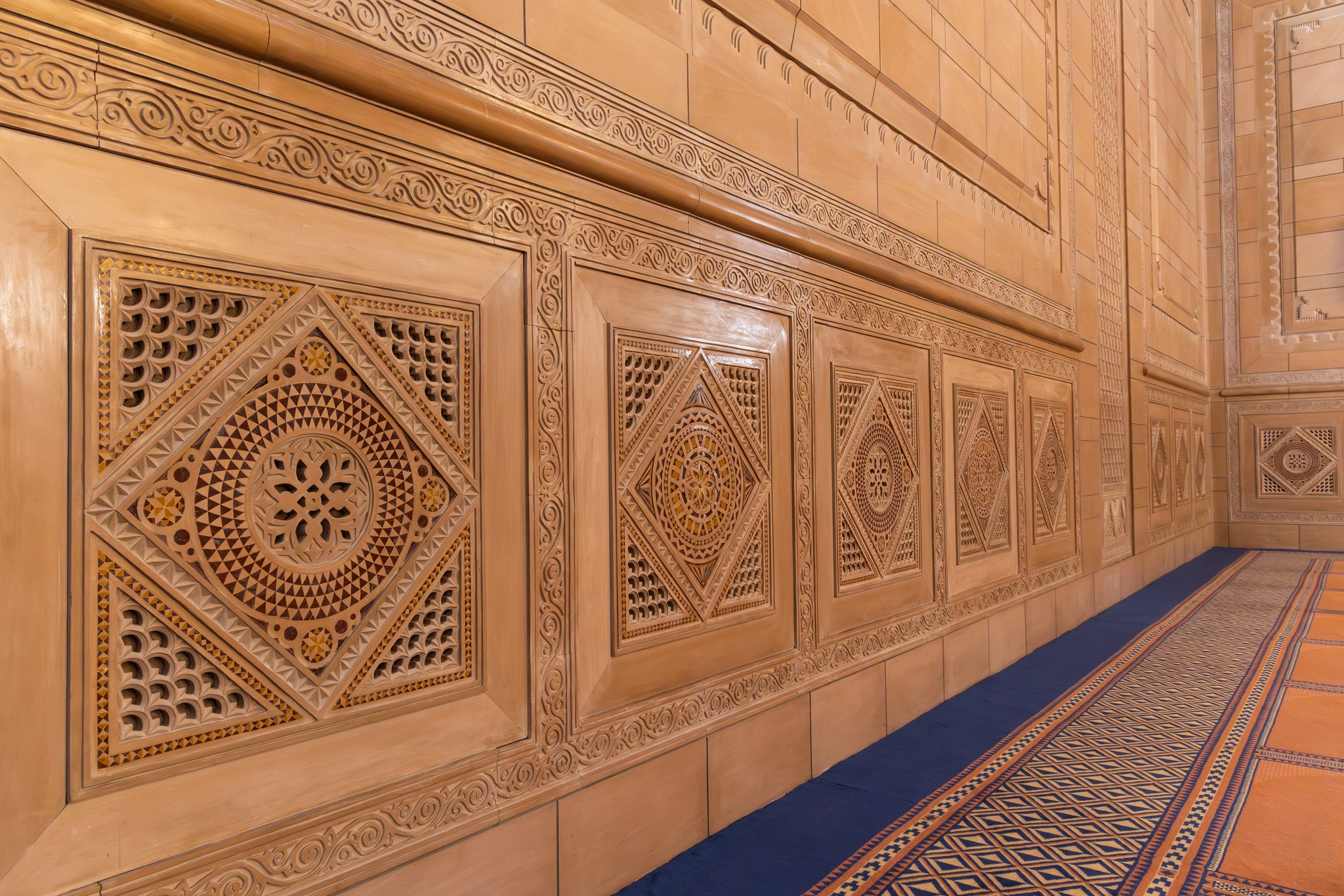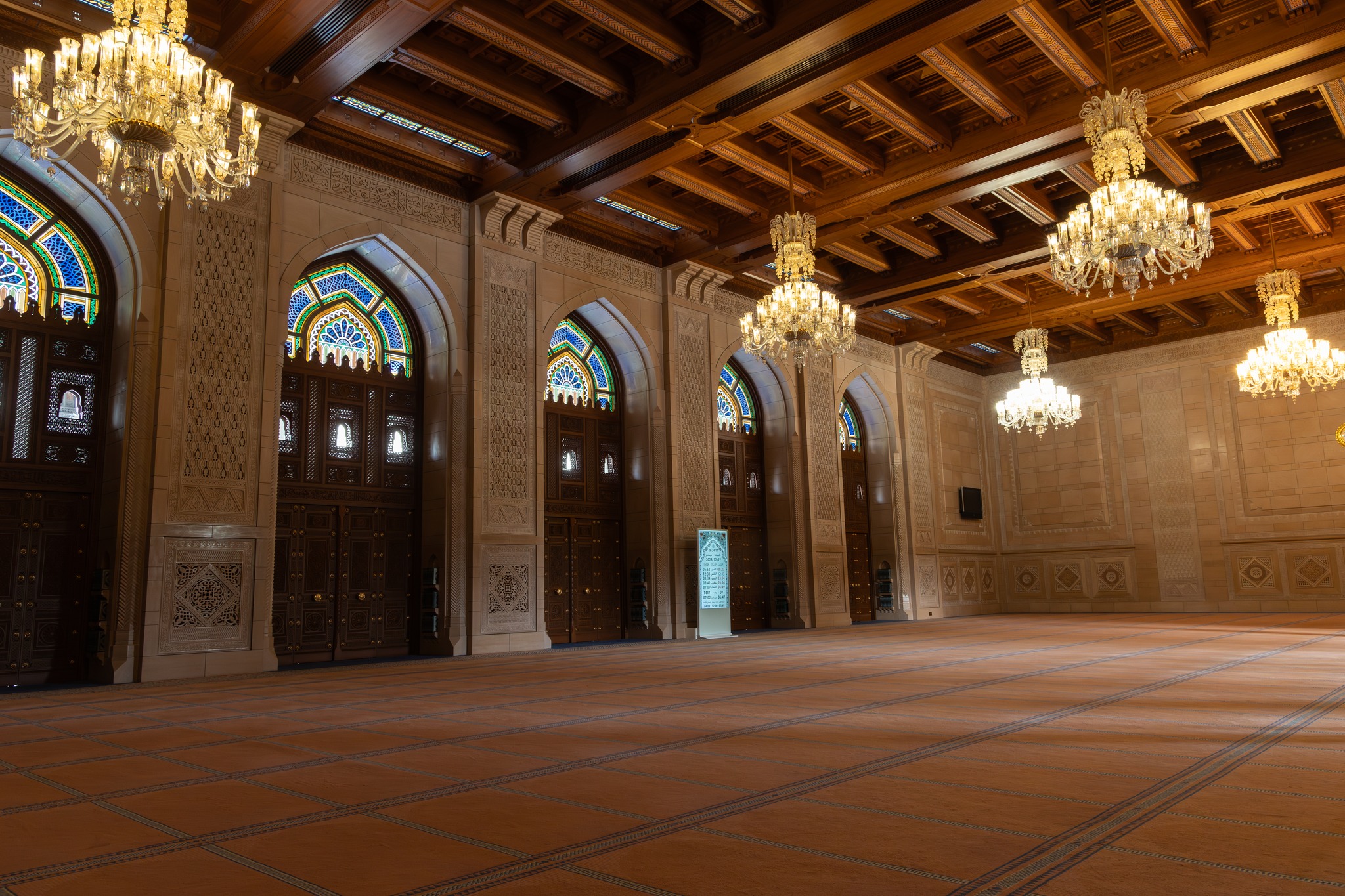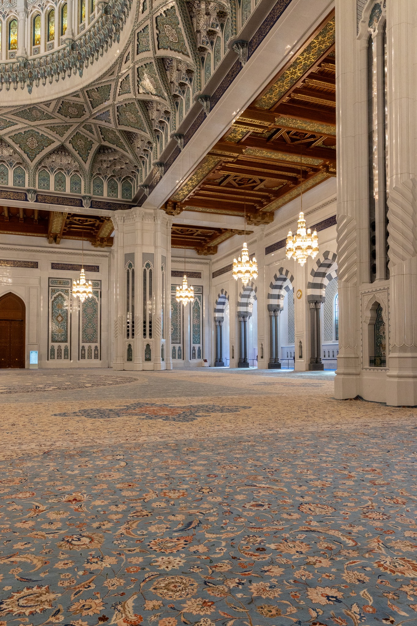 Mošee ise on ilusam kui öö ja päev kokku, avar, mõnusa valgusega, väga head toonid, puhas, meisterlik detailne käsitöö nii vaipades, kivist seinapaneelides, puidust ustel kui kristall-lühtrites. Rahvusvahelise koostöö meistriteos – Iraagi arhitekti visiooni viis ellu Briti peatöövõtja, kasutades Indiast toodud liivakivi, Iraani põrandavaipa, Itaalia valgusteid, marmorit nii eelmainitud riikidest kui Egiptusest ja Omaanist endast. Kohalik on ka puit, mida kasutati uste tegemiseks.