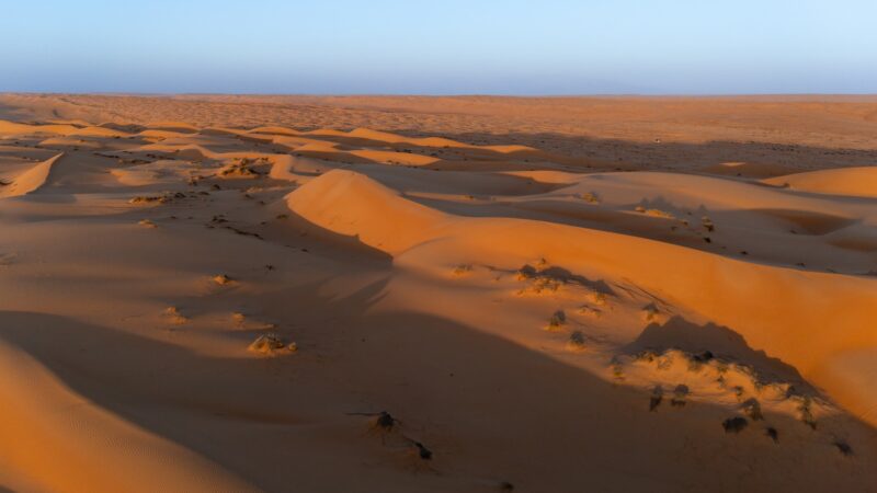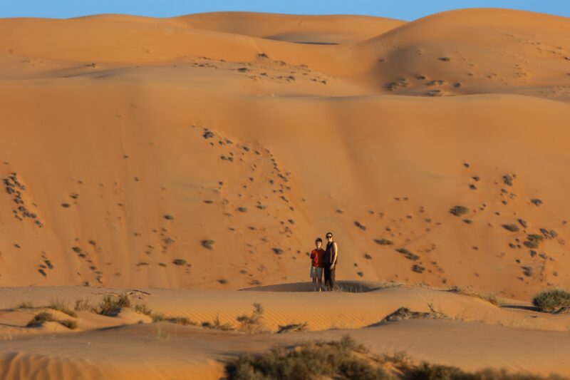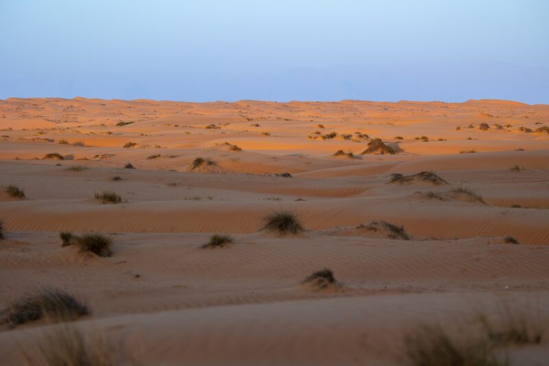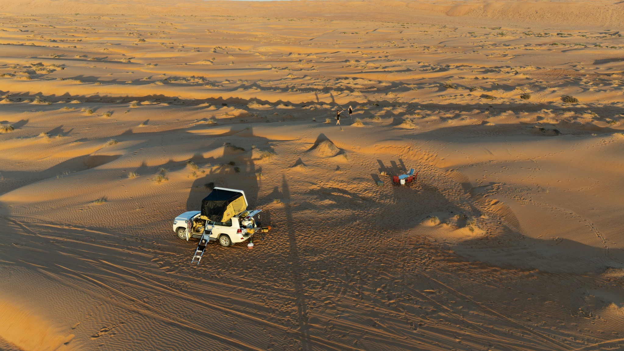 Araabia kõrb laiub 1.9 miljonil ruutkilomeetril. Me oleme selle idapoolseimas mereäärses osas, kus põhja-lõuna suunal jooksevad pea saja kilomeetri pikkused düünid. Pärast kosutavat und kõrbevaikuses ootabki meid ees 3-4 tunnine liivane sõit, et leida tee mereni. Esmalt sadakond kilomeetrit düünide vahel lõuna poole ja seejärel nende madalamaks muutudes suund itta, et jõuda Araabia mereni.